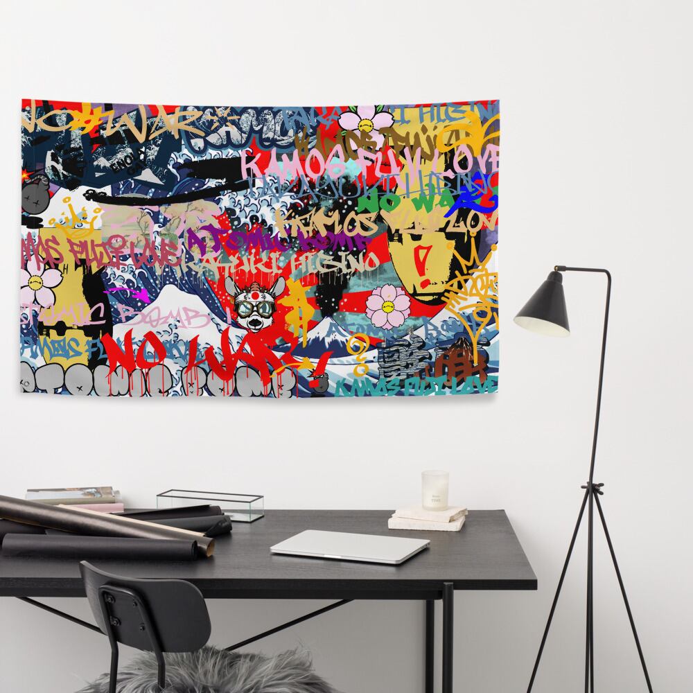 この象徴的なオリジナルのアートワークは若いかもしかの侍をメインに富岳三十六景の浮世絵を再構築したグラフィティアート。日本固有の絶滅危惧種ニホンカモシカ「KAMOS」をストリートアート風に描いた作品。KAMOSの特徴は人間に襲われた右目にあり、口元の歪んだ表情には何かを感じさせるものがある。 反抗的な言論の感覚を呼び起こす微妙な皮肉を込めて、KAMOS の物語が展開し、絶滅の危機に瀕した世界でニホンカモシカが直面する象徴的な挑戦を示しています。 挑発的で考えさせられる物語を伝えながら、このユニークな生き物の回復力を表現します。