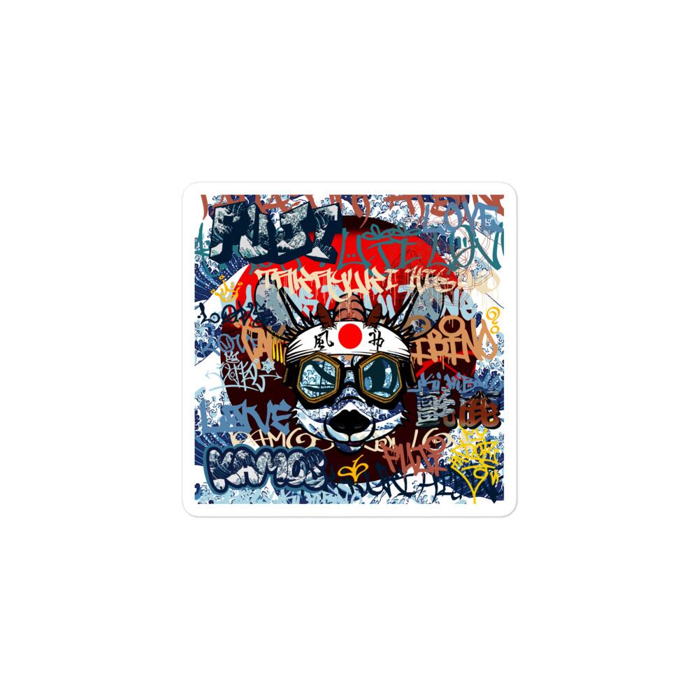 この象徴的なオリジナルのアートワークは若いかもしかの侍をメインに富岳三十六景の浮世絵を再構築したグラフィティアート。日本固有の絶滅危惧種ニホンカモシカ「KAMOS」をストリートアート風に描いた作品。KAMOSの特徴は人間に襲われた右目にあり、口元の歪んだ表情には何かを感じさせるものがある。 反抗的な言論の感覚を呼び起こす微妙な皮肉を込めて、KAMOS の物語が展開し、絶滅の危機に瀕した世界でニホンカモシカが直面する象徴的な挑戦を示しています。 挑発的で考えさせられる物語を伝えながら、このユニークな生き物の回復力を表現します。